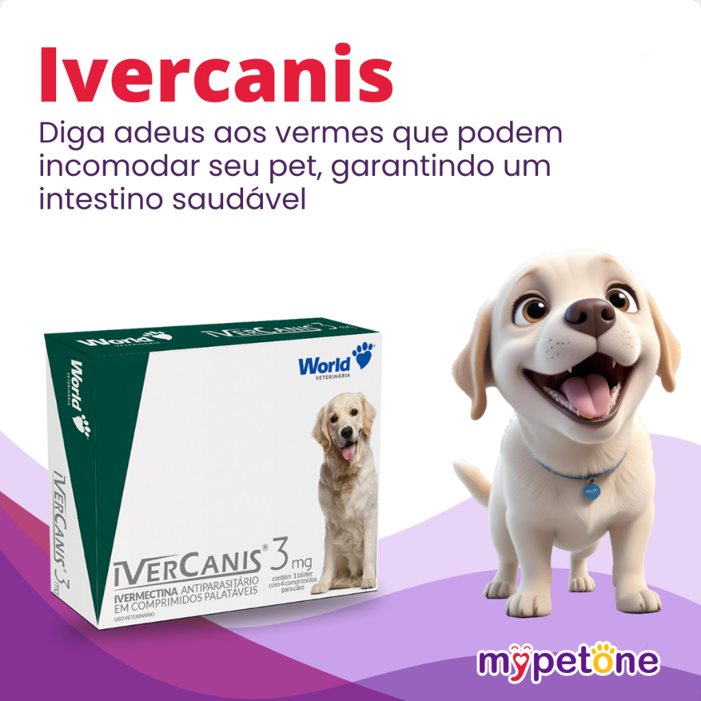 IverCanis 3mg para Cães de 15Kg - Blíster 4 Comprimidos - Comprimidos palatáveis; - Antiparasitário à base de ivermectina; - Indicado no tratamento da sarna sarcóptica. * Consulte sempre o Médico Veterinário de sua confiança para o uso apropriado deste produto. Leia a bula ou informações descritas na embalagem. Detalhes O IverCanis 3mg para Cães de 15Kg - Blíster 4 Comprimidos é um potente sarnicida, cujo princípio ativo é a ivermectina, endectocida do grupo das lactonas macrocíclicas. A ação da ivermectina contra os parasitas se relaciona à inibição da motilidade do parasito. Sabe – se hoje que essa molécula se liga seletivamente com alta afinidade aos canais de íon cloreto ligados ao glutamato nos nervos e nas células musculares dos invertebrados. Esses canais podem ocorrer bem próximos aos locais ligados ao GABA (ácido γ-aminobutírico). A ivermectina, assim como outras lactonas macrocíclicas, pode potencializar a atividade do GABA nos pontos de ligação em doses maiores. Nos artópodes, o local primário de ação é a junção mioneural, sendo o influxo de íon cloreto fator de diminuição da resistência da membrana celular com consequência a hiperpolarização do potencial de repouso das células pós-sinápticas. O resultado é uma paralisia flácida do parasito, que perde fixação e morre. IverCanis tem como componente ativo a ivermectina, um agente ectoparasiticida indicado para o tratamento de Sarna Sarcóptica causada por Sarcoptes scabiei (var. canis). Dicas Especiais O Antiparasitário World Veterinária IverCanis 3 mg para Cães de 15 Kg deve ser administrado via oral. Conservar em local seco ao abrigo da luz solar. Importante: Não é recomendado o uso em filhotes com menos de 6 semanas de vida, nem em fêmeas durante a gestação ou lactação. Não administrar o produto em cães da raça Collie, Pastor de Shetland, Border Collie, Old English Sheepdog, Australian Sheepherd (Pastor Australiano) e nos cruzamentos destas raças. Recomenda-se o acompanhamento minucioso das raças Galgo Afegão, Saluki, Whippet, Greyhound e Samoyed submetidos á terapia devido a apresentação de sensibilidade à ivermectina. Seguir sempre a orientação do Médico Veterinário. Posologia: Administrar, por via oral, 0,2mg/kg/dia, de acordo com o peso corporal, em dose única. Sendo: 1 comprimido de IverCanis 3mg para ................................................................................................. 15 kg Os comprimidos poderão ser partidos em seu(s) sulco(s) para ajuste de dosagem. Em caso de infestações severas, em estágio de evolução adiantado, para controlar ninfas resultantes da eclosão dos ovos não atingidos pelo tratamento inicial, a dose poderá ser repetida uma ou duas vezes, com intervalos de 7 dias, a critério do Médico Veterinário. Indicação: Cachorros Porte/Raça: Raças Pequenas Idade: Adultos Composição: Cada comprimido de 3mg contém: Ivermectina .............................. 3mg Excipiente q.s.p. ....................... 180mg Apresentação: 1 Blister com 4 Comprimidos
