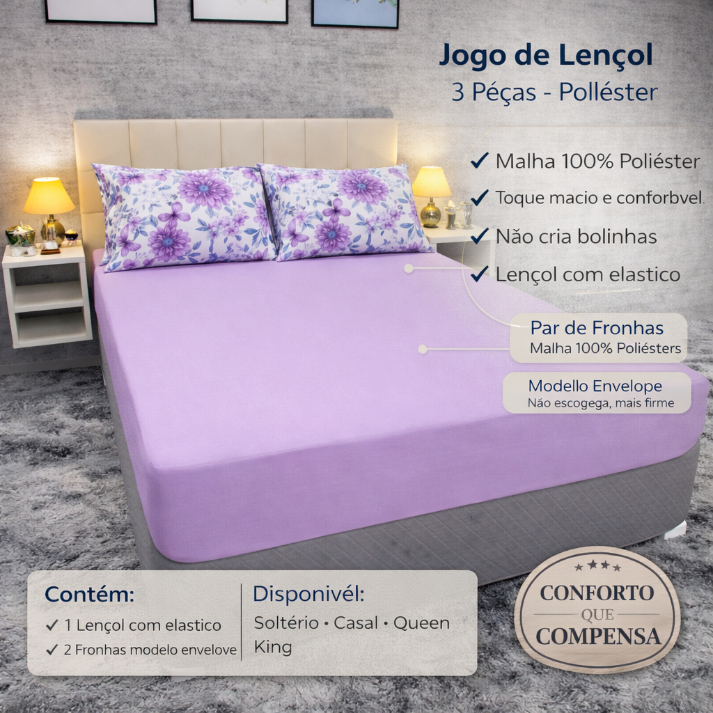 Kit 2 Jogos De Lençol Cama King Size 3 Peças Malha Premium