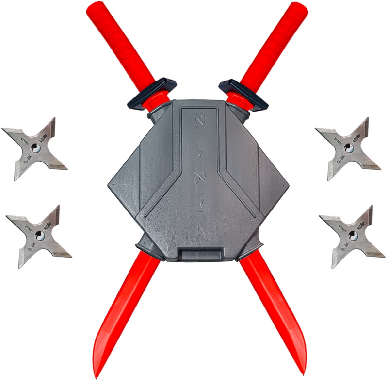Kit Super Legal Espadas Ninja Shuriken e Suporte para Espadas você utiliza nas costas. Conteúdo da Embalagem: Possui: 2 Espadinhas de Plástico, 1 Suporte/Porta Espadas, e 4 (Shuriken/Estrelas). Diversão Garantida para Criançada, Eventos de Cosplay, Festas Fantasia, Gincana. Informações do Produto Indicado para crianças maiores de 3 anos. Cor: Sortida: Podendo Ser Cinza, Preto, Vermelho. Medida da Espada: 60 x 7cm - Peso: 50g: Medida do Suporte p/ Espadas: 23 x 20cm - Peso: 100g: (com elástico p/ colocar nas costas); Medida da Embalagem: 51 x 42cm - Peso: 250g;