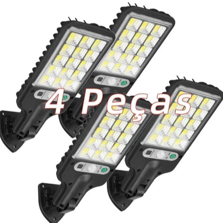 Kit 2-Kit4 Luminária Led Solar Poste Rua Parede Sensor 180 Cob Led Controle