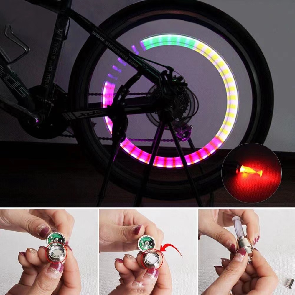 CARACTERÍSTICAS: Luz LED ativada por movimento, serve para rodas de bicicleta, motocicleta, carro, caminhão, etc. São ativadas por movimento, uma vez que a roda começa a girar, a luz acende. Quando a roda para de girar, a luz apaga. É de fácil instalação, bastando apenas rosquear a válvula no bico de ar da roda. A luz deixa a roda incrivelmente bonita e anuncia sua presença com segurança à noite. Não se esqueça de remover o papel de proteção da bateria para ativar a luz. INSTRUÇÕES: 1- Ao ligar pela primeira vez, você deve desparafusar a tampa traseira e remover a folha de isolamento no meio da bateria ou no meio da bateria e da mola, caso contrário, a luz não vai acender. 2- Não inverta a posição das baterias, pois isso pode ocasionar a queima do produto. 3- Esta lâmpada tem uma condição de ser induzida por vibração e brilhará quando houver vibração. Em condições relativamente estáticas, esta lâmpada não acenderá. ESPECIFICAÇÕES: - Cor: verde, amarelo, azul e rosa (VERIFICAR DISPONIBILIDADE NO MOMENTO DA COMPRA); - Material de construção: PVC + alumínio; ITENS INCLUSOS: -1 Par de Luzes LED Para instalar no bico de ar
