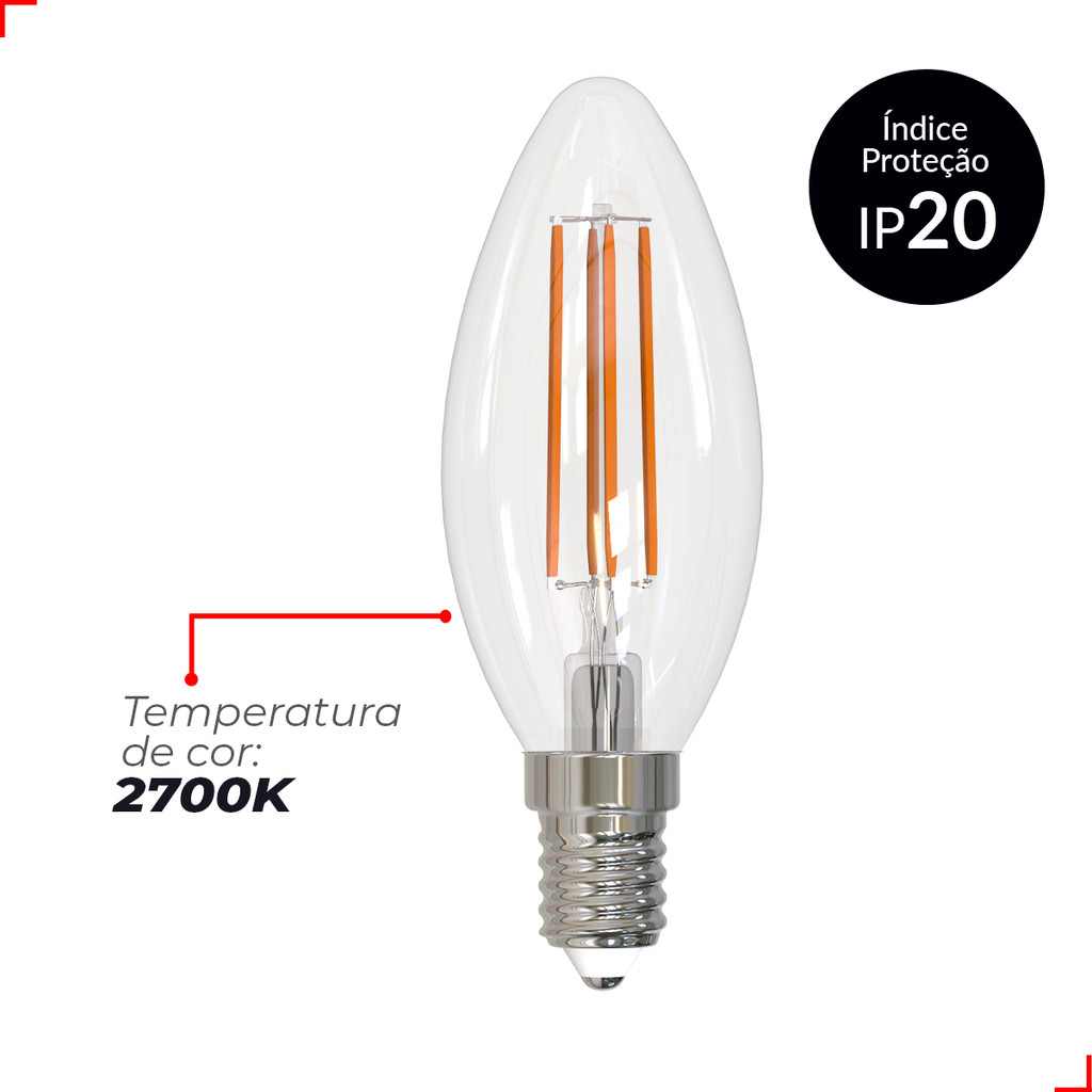 Kit 2 Lâmpadas de Led Vela Filamento Retro Vintage Clear 4W E14 2700k Deluxe Bivolt Luz Branco Quente