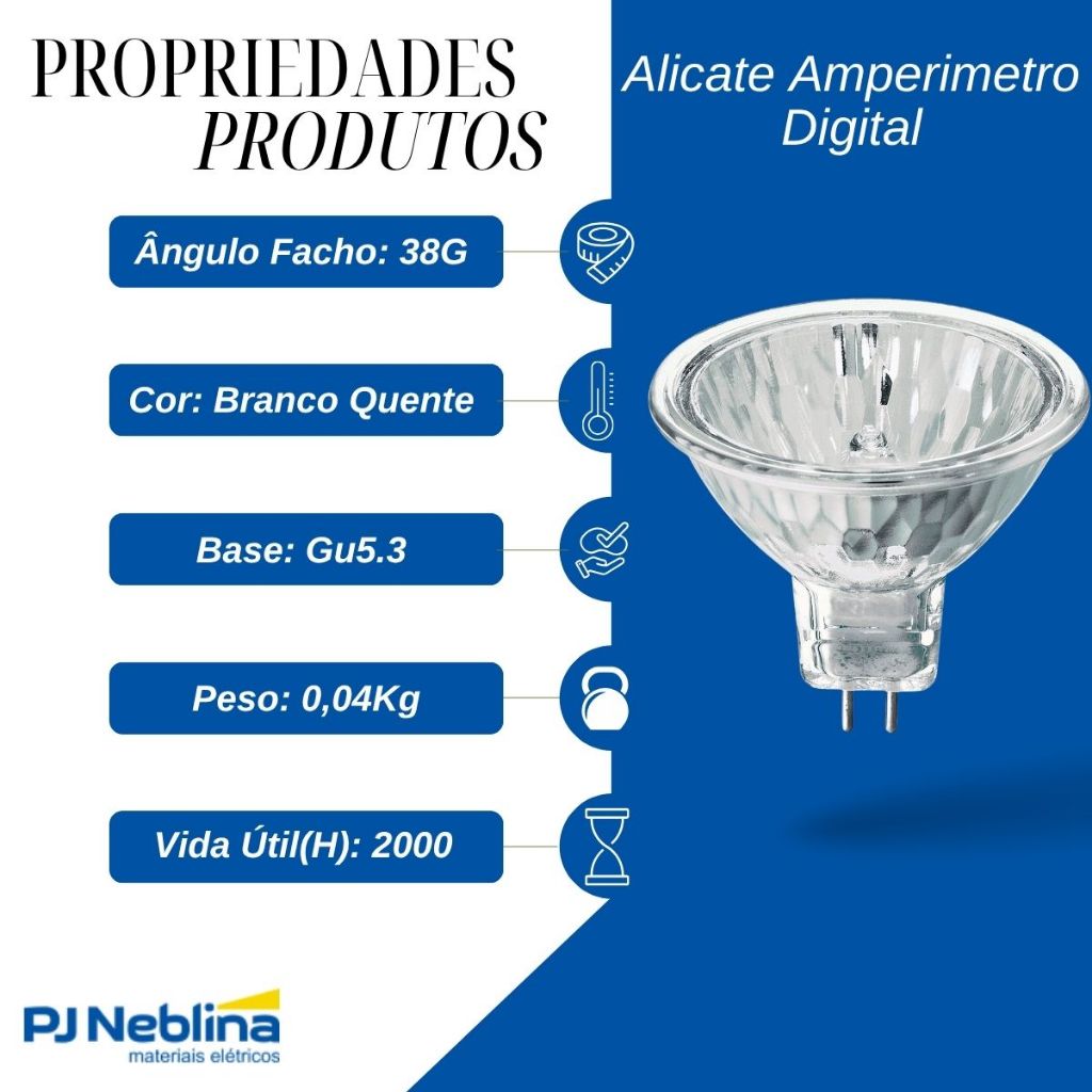 Kit 2 Lâmpadas Halógenas Dicroica MR16 50W 12V GU5.3 2800K | Ideal p/ Spots, Residências e Lojas