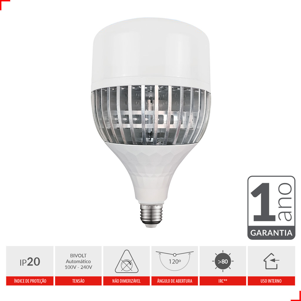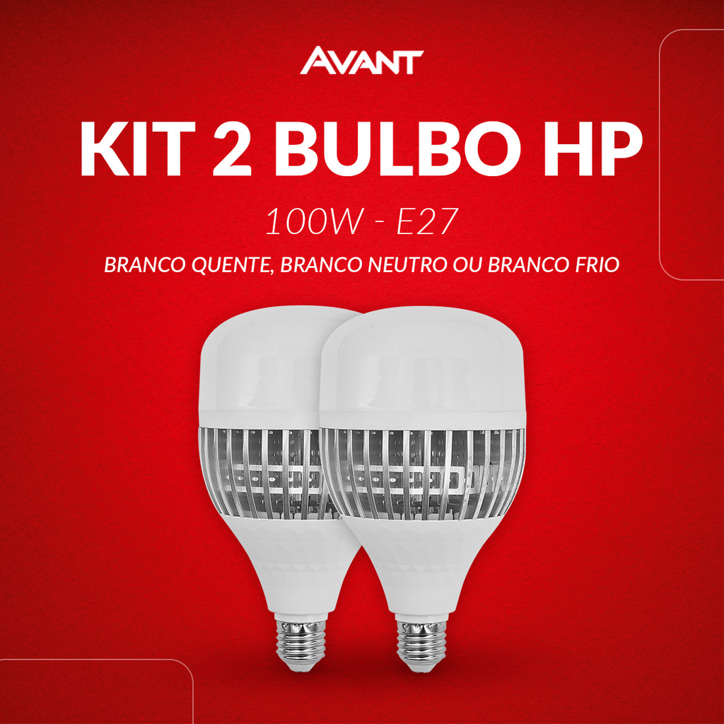Kit 2 Lampadas Led Bulbo Hp 100w 3000k, 4000k ou 6500k E27 110v/220v Bivolt Cod: 789811372-123 Avant
