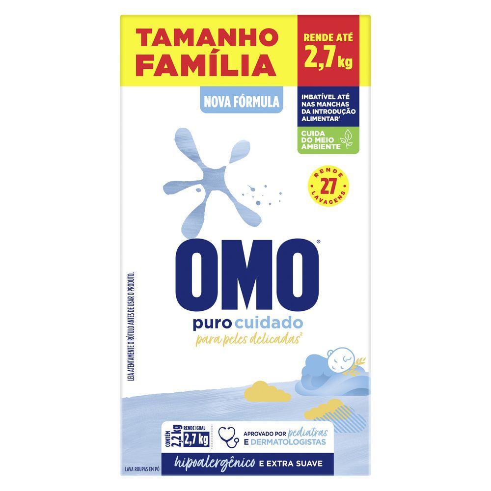 Kit 2 Lava Roupas em Pó Omo Puro Cuidado 2,2kg • O Sabão em Pó OMO Puro Cuidado foi desenvolvido para peles delicadas** • Lava roupas com fragrância extra suave, dermatologicamente testado e ideal para roupinhas do bebê • O Sabão em Pó OMO Puro Cuidado é hipoalergênico, avaliado e aprovado por pediatras e dermatologistas • Lava roupas imbatível nas manchas da introdução alimentar* • O Sabão em Pó OMO Puro Cuidado é seguro para as roupinhas do bebê • Tira manchas poderoso! Com apenas meia xícara, você lava uma máquina cheia. O Sabão em Pó OMO Puro Cuidado foi especialmente formulado para cuidar das roupas sem agredir as peles mais delicadas**. Avaliada por pediatras, sua fórmula é hipoalergênica e extra suave, respeita as peles mais delicadas enquanto combate as manchas mais profundas. É perfeito para lavar as roupinhas do seu bebê. O lava roupas OMO Puro Cuidado é imbatível nas manchas da introdução alimentar* e cuida do meio ambiente, pois sua fórmula contém ingredientes biodegradáveis e não possui fosfato, ajudando a preservar rios e oceanos, além de economizar água, uma vez que precisa de apenas 1 enxágue. Além disso, possui ativo concentrado, tecnologia que cuida do planeta. Menos CO², menos poluição. Por isso, apenas meia xícara lava uma máquina cheia. Faça o descarte consciente. Quando você escolhe OMO, você escolhe um mundo melhor. Juntos, sOMOs a transformação positiva para o meio ambiente. Seu uso é recomendado por Brastemp e Consul. Mantenha o produto fora do alcance de crianças e dos animais domésticos. Leia o rótulo antes de usar o produto. *Comparado com detergentes em pó do mesmo fabricante. Manchas como mamão, suco de tangerina e papinha de cenoura. ** Desenvolvido para lavar roupas de pessoas com pele delicada.