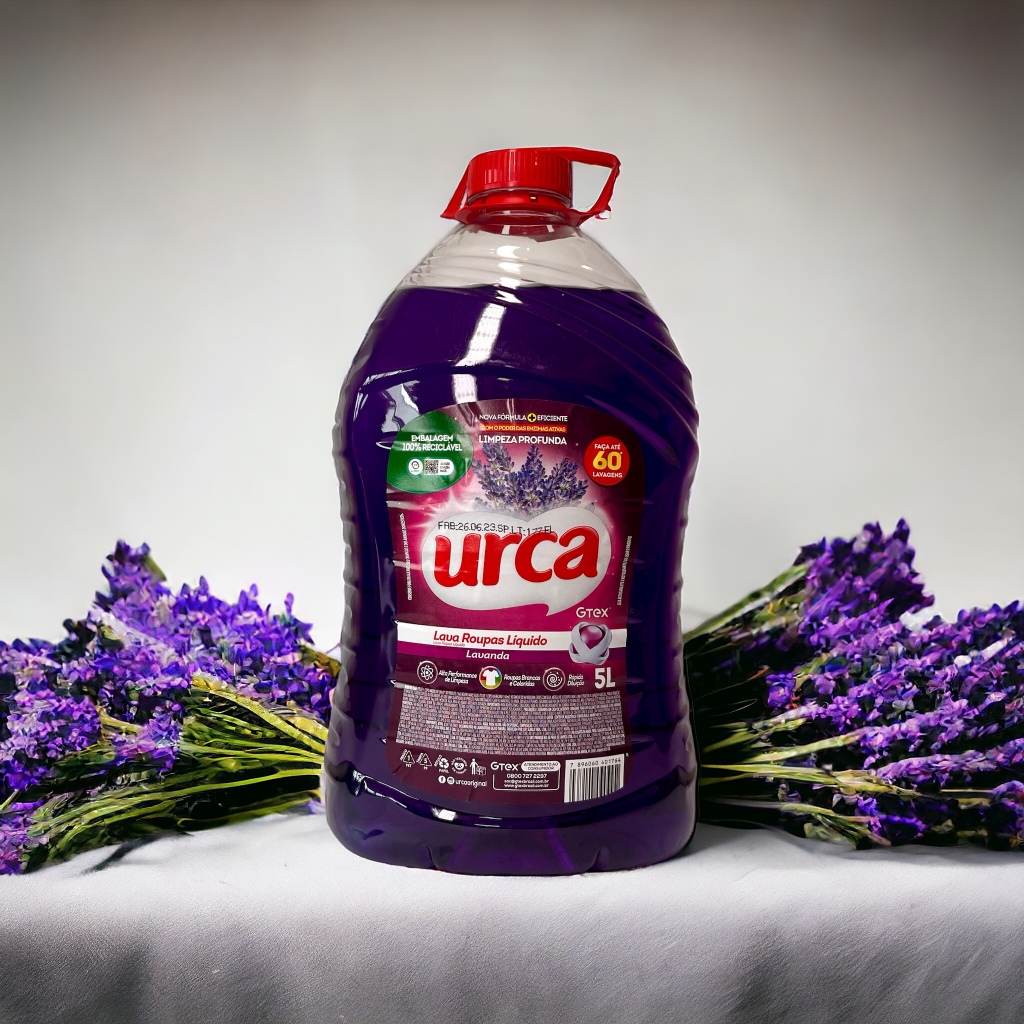 Vantagens Cada pessoa tem o seu estilo na hora de lavar roupas e os Lava Roupas Líquido Urca Lavanda está pronto para atender qualquer tipo de exigência! O Lava Roupas Líquido Urca Lavanda tem alta performance sobre a sujeira do dia a dia. O Lava Roupas Líquido Urca Foi desenvolvido para cuidar das roupas brancas e coloridas. O lava roupas líquido se adapta a todos os tipos de roupa. Excelente substituto do detergente em pó, ele é perfeito para quem busca praticidade e uma limpeza completa. A versão Lavanda, com seu perfume marcante, é oferecida nas embalagens de1L 3L e 5 litros, com uma formulação eficaz. Pra quem se pergunta se é melhor um lava roupas líquido ou um lava roupas em pó, já posso te dizer que tudo depende do seu gosto. Afinal, o Lava Roupas Urca Lavanda tanto em sua versão líquida como em pó, garante a limpeza completa das suas roupas. Detalhes técnicos: Unidade: 5L Lava Roupas Líquido Urca Lavanda Dimensões da embalagem: 18,9 cm(L)x 14,3cm(P)x32cm(A) Vida útil: 24 meses Modo de usar Utilize ½ copo tipo americano** do produto e, nas roupas mais sujas, utilize 1 copo americano cheio**, no tanque ou na máquina* cheios com água. Mergulhe as roupas uma a uma e proceda a lavagem habitual. Para a remoção de manchas, sujeiras difíceis ou encardidos, aplique uma quantidade do produto puro diretamente sobre as manchas, ou ainda, em golas e punhos, deixando agir por um período de 30 minutos. Não ultrapasse este período. Essa dosagem é indicada para máquina com capacidade de 5kg, nível médio de água. Para as demais, adequar a dosagem. **Um copo tipo americano equivale a 200 ml. Dica de Gê Nas versões líquidas, pó ou mesmo de coco, os Lava Roupas Urca estão prontos para atender qualquer tipo de exigência. Aqui você pode escolher o seu preferido! E tem mais! Para potencializar a lavagem das suas roupas, deixá-las macias e com aquele cheirinho maravilhoso, utilize também os Amaciantes Urca.