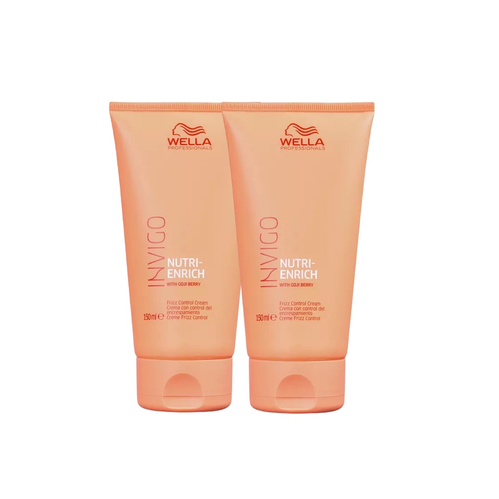 O Kit Contém: 2 - Leave-in Invigo Nutri-Enrich Frizz Control Cream 150ml Wella Sobre o Produto: Kit de Nutrição Intensiva. Indicado para cabelos secos e/ou ressecados. Fórmula profissional enriquecida com Oxidantes que protege a fibra, devolvendo a vitalidade e brilho dos cabelos. Modo de usar: Aplicar com os cabelos molhados. Massagear suavemente até fazer espuma. Em seguida Enxague. Repita se necessário. Após a lavagem dos cabelos, aplique uma pequena quantidade do Leave-in, espalhe mecha a mecha. Não é necessário enxaguar. Ingredientes: AQUA/WATER/EAU, DIMETHICONE, STEARAMIDOPROPYL DIMETHYLAMINE, CETYL ALCOHOL, PANTHENOL, HYDROXYETHYLCELLULOSE, QUATERNIUM-18, BENZYL ALCOHOL, PEG-2M, CETEARYL ALCOHOL, METHYLPARABEN, TOCOPHERYL ACETATE, GLYCERIN, PROPYLPARABEN, GLYCERYL STEARTE SE, OLEYL ALCOHOL, POLYSORBATE 60, LYSINE HCI, CITRIC ACID, EDTA, OLEIC ACID, LIMONENE, BENZYL SALICYLATE, HEXYL CINNAMAL, SILICA, LYCIUM BARBARUM FRUIT EXTRACT, LINALOOL, CITRONELLOL, ALPHA-ISOMETHYL LONONE, SODIUM BENZOATE, CITRAL, GERANIOL, LACTIC ACID, COUMARIN, POTASSIUM SORBATE, BHT. Cuidados/Restrições: Evite o contato com os olhos. Caso isso aconteça, enxágue com água em abundância. Havendo irritação, suspender o uso e procurar orientação médica. Não ingerir. Manter fora do alcance de crianças. Uso externo.
