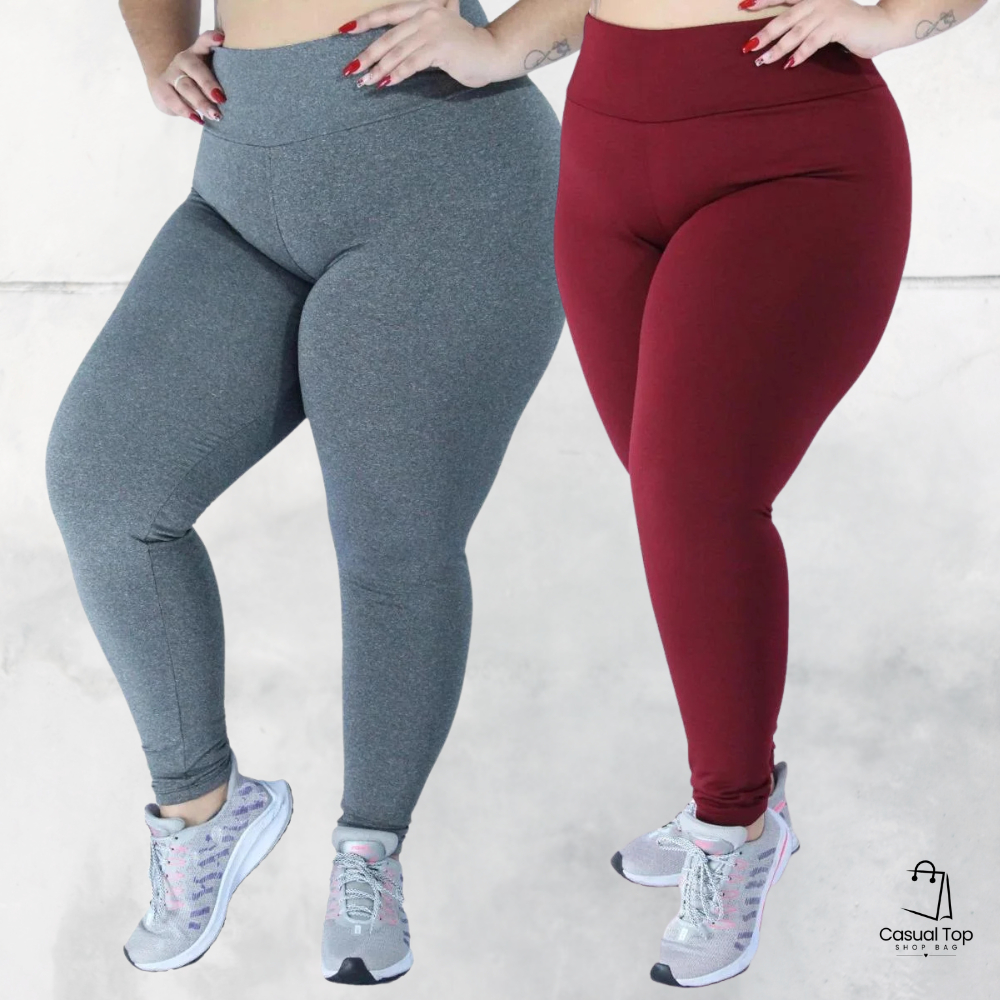 Kit 2 Legging Plus Size Flanelada Suplex Grossa Leg Cintura Alta Zero Transparência G1 G2 G3 G4 G5