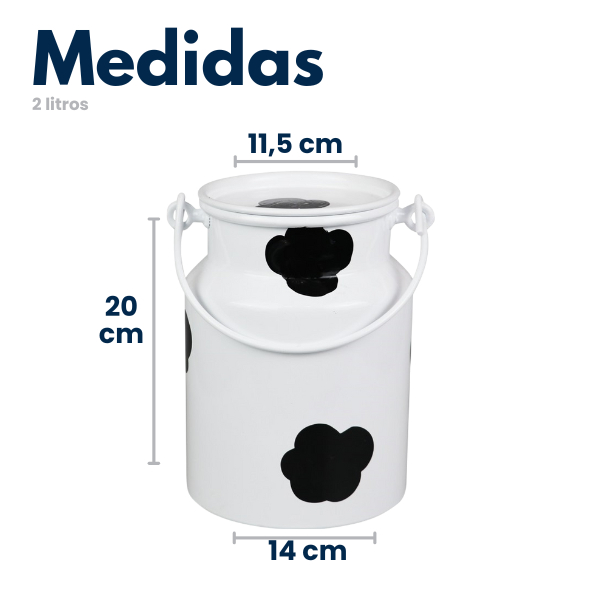 KIT LEITEIRAS (uma de 1 litro e uma de 2 litros) Os latões com mancha, pertencem a uma linha bem elaborada, destinada a decoração de festas ou uso próprio para alimentos ou jardim. Com pintura eletrostática e manchas feito à mão, dando um toque especial na sua decoração ou festa. 2 LITROS Altura:20cm Diâmetro Boca: 11,5cm Diâmetro Base:14cm Peso 215g Capacidade para 2 litro 1 LITRO Altura:14cm Diâmetro Boca: 10cm Diâmetro Base:11,5cm Peso 154 g Capacidade para 1 litro Qualquer dúvida estamos à disposição para esclarecimentos. Att, ALUMÍNIOS CAMARGO
