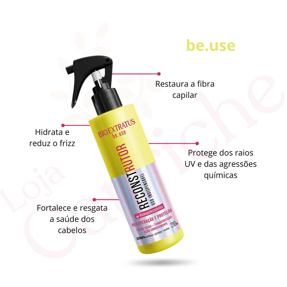 🔥 Compras efetuadas até as 11h são enviadas no mesmo dia! 🧴Contém 01 Shampoo 1L PÓS QUÍMICA + 01 Condicionador 1L PÓS QUÍMICA + 01 RECONSTRUTOR BE.USE 210ML +🎁BRINDE 4 SACHÊS VARIADOS🎁 - Bio Extratus – Trata danos que geram ressecamento, opacidade e porosidade aos fios. PÓS-QUÍMICA - TRATAMENTO RESTAURADOR INDICAÇÃO Cabelo danificado por química. FUNÇÃO Tratar os danos que geram ressecamento, opacidade e porosidade aos fios. RESULTADOS E BENEFÍCIOS Cabelos macios, saudáveis, hidratados e protegidos. A Bio Extratus buscou inspiração em uma tradição da cultura popular brasileira e uniu a potência hidratante do abacate e da jojoba para criar uma linha que restaura e protege seus fios dos danos. 🧴SHAMPOO - pH 5,5 LIMPEZA SAUDÁVEL Lava de forma eficiente sem agredir, iniciando o processo de restauração dos fios. Aplique sobre os cabelos molhados, massageando suavemente, sem esfregar. Enxágue bem. Se necessário, repita a aplicação. 🧴CONDICIONADOR - pH 3,5 CONDICIONA E RESTAURA OS FIOS Condiciona e combate o ressecamento, alinhando as cutículas e ajudando a restaurar a hidratação dos fios. Após lavar os cabelos com shampoo, aplique o condicionador por toda a extensão dos fios, massageando suavemente. Para uma hidratação profunda, use o condicionador depois da etapa do banho de creme. Deixe agir de 1 a 2 minutos. Enxágue." 🧴Reconstrutor Uso Indispensável be.use 210mL - Tratamento rápido + Termo proteção Indispensável na sua rotina: indicado para todos os tipos de cabelo, o Reconstrutor be.use é multifuncional e traz multibenefícios. Oferece alta performance, proporciona um tratamento completo de recuperação, manutenção e proteção dos fios. De ação rápida (apenas 2 minutos), contém filtro solar e termoprotetor para altas temperaturas. Tudo o que você deseja para seu cabelo em um único produto. pH4,0. Benefícios: Tratamento em 2 minutos: O produto age rapidamente, tratando e recuperando os fios. Termoproteção: Protege o cabelo do calor de até 230º C, sendo ideal para usar antes do secador ou chapinha. Filtro solar: Ajuda a proteger os fios da exposição solar. Mode de uso: Reconstrução: após lavar os cabelos com shampoo, borrife o Reconstrutor em toda a extensão dos fios, massageando suavemente. Deixe agir 2 minutos e enxágue. Pode usar antes ou depois da máscara. Cabelos oleosos podem dispensar o uso da máscara.Finalização: com cabelos limpos e úmidos, borrife em toda a extensão dos fios. Não enxágue. Finalize como desejar. Excelente resultado com escova, baby liss ou chapinha.
