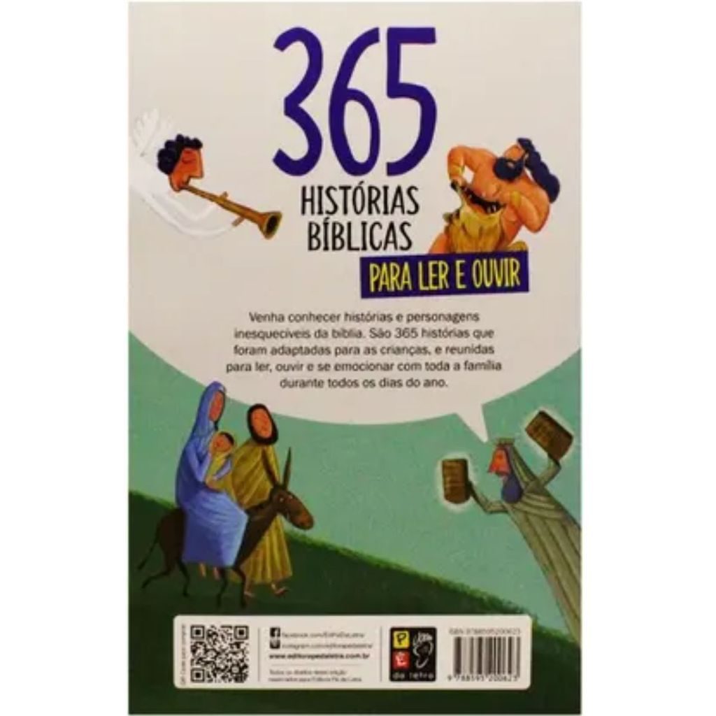 Kit 2 Livros | 365 Histórias Bíblicas para Ler e Ouvir + Bíblia Infantil Ilustrada Letras Grandes 365 Histórias Bíblicas para Ler e Ouvir: conheça um pouco do mundo dos contos bíblicos. São 365 histórias que foram reunidas para ler com toda família durante todos os dias do ano. Vamos começar agora? Editora: Pé da Letra Acabamento: Capa comum Dimensões: 14x21 Número de páginas: 365 Bíblia Infantil Ilustrada Letras Grandes: Ajuda na formação dos valores cristãos, tema de grande relevância entre as famílias. • Uma ferramenta importante para ser utilizada por Educadores cristãos. • Preciosos ensinamentos que desenvolvem atitudes positivas e lições por meio de exemplos. • Linguagem acessível e letras grandes, desenvolvidos especialmente para os pequenos em fase de alfabetização. Esta obra, lindamente ilustrada, traz uma seleção das mais envolventes, inspiradoras e fascinantes histórias da Bíblia. Da criação do mundo, às bonitas e cativantes parábolas de Jesus e seus ensinamentos eternos. Editora: Todo livro Acabamento: Capa dura almofadada Dimensões: 14,5x21 Número de páginas: 112