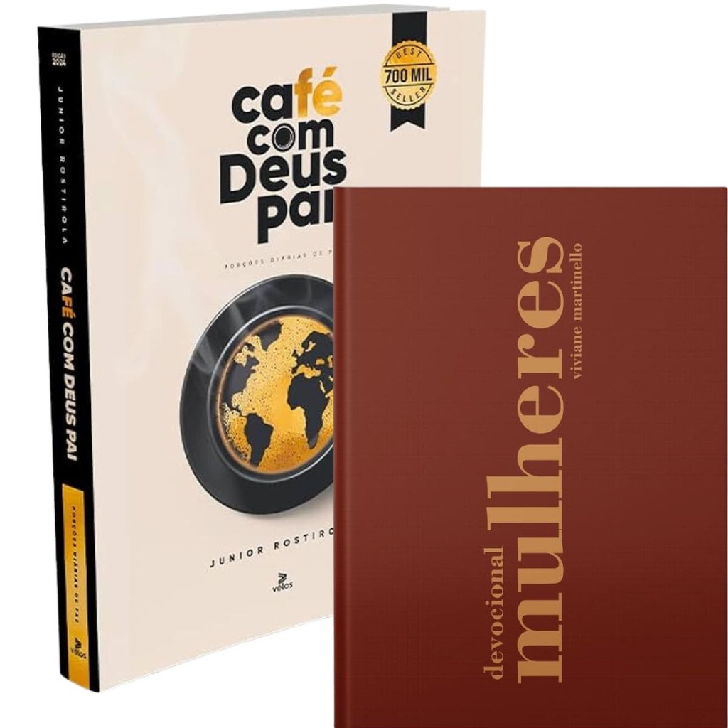 Kit contém 1 Café com Deus Pai + 1 Devocional Mulheres Viviane Martinello Café com Deus Pai: Que tal desfrutar de um momento íntimo com alguém que te ama e tem as respostas para todas as suas aflições? Essa é a experiência que você encontra em cada página de Café com Deus Pai. São 366 mensagens que te levarão a uma jornada com devocionais diários ao longo do ano, onde você é convidado a ter um encontro com Deus Pai. Um livro que desperta sensações, Café com Deus Pai , proporciona um toque macio, além de um delicioso aroma de café em cada folha. As páginas interativas irão envolvê-lo ainda mais nessa jornada, permitindo que você reflita, anote suas inspirações e compartilhe suas experiências. A cada dia, você encontrará uma mensagem única e significativa, especialmente selecionada para nutrir sua alma e fortalecer sua fé. Para tornar o seu dia ainda mais especial, frases inspiradoras são destacadas ao longo do livro, proporcionando motivação e encorajamento sempre que precisar. E para aqueles que desejam se aprofundar ainda mais na Palavra de Deus, também é incluso um plano de leitura bíblica, que o guiará por uma jornada de conhecimento e descoberta. Além de proporcionar um novo modo de apreciar uma xícara de café, este livro mostrará como a vida pode ser saboreada. Sim, Deus Pai deseja tomar café com você. Contém: - Soft Touch - Toque macio - Cheiro de café - Páginas interativas - Uma mensagem para cada dia do ano - Frases em destaque para inspirar seu dia - Plano de leitura bíblica Autor: Junior Rostirola Editora: Vélos Acabamento: Capa brochura Dimensões: 16 cm larg. x 23 cm alt. Número de páginas: 424 Devocional Mulheres Viviane Martinello: Em Devocional Mulheres, o novo devocional anual, repleto de testemunhos pessoais, conselhos e ensinamentos, Viviane Martinello nos traz reflexões profundas a respeito de diversos temas relacionados à vida da mulher cristã. Assuntos, como relacionamentos, perdão, serviço, chamado, família e casamento são abordados à luz da Palavra de Deus, baseados nas experiências que a pastora da Abba Pai Church adquiriu ao longo do seu ministério e da sua vida de devoção ao Pai. Ao longo do ano, você será levada a uma jornada de crescimento espiritual, através de palavras inspiradoras e meditações diárias, que servirão de auxílio para o aprofundamento do seu relacionamento com o Senhor. Mulheres de todas as idades poderão se identificar com as histórias e aprendizados valiosos contidos nestas páginas, e encontrarão uma fonte de inspiração e encorajamento, a fim de se tornarem, a cada dia, mais parecidas com Cristo e cumprirem com o propósito para o qual foram chamadas. Autor: Viviane Martinello Editora: Vida Acabamento: Capa dura Dimensões: 16 cm larg. x 20 cm alt. Número de páginas: 384