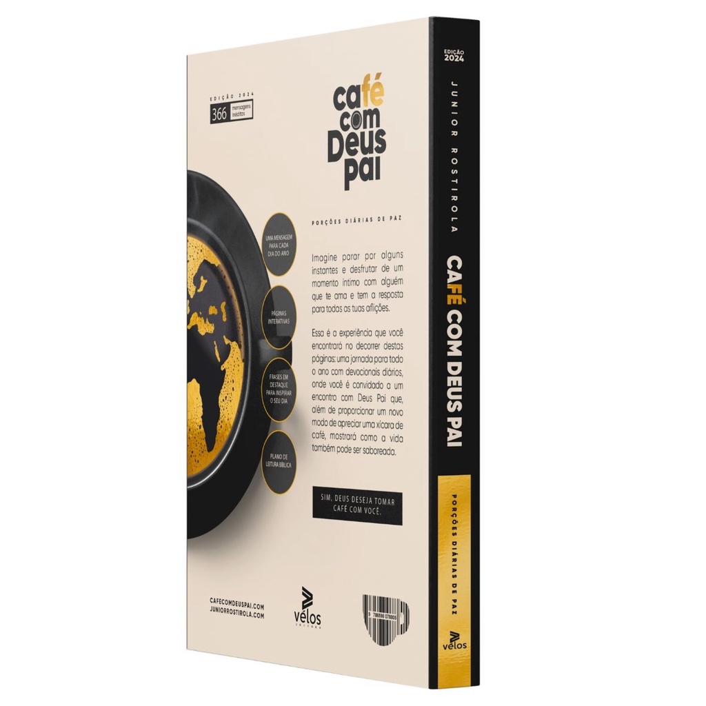 " Kit 2 Livros: contendo 1 Devocional Café com Deus Pai 2024 + 1 Café com Deus Pai Kids " Devocional Café com Deus Pai 2024 :Que tal desfrutar de um momento íntimo com alguém que te ama e tem as respostas para todas as suas aflições? Essa é a experiência que você encontra em cada página de Café com Deus Pai. São 366 mensagens que te levarão a uma jornada com devocionais diários ao longo do ano, onde você é convidado a ter um encontro com Deus Pai. Um livro que desperta sensações, Café com Deus Pai 2024, proporciona um toque macio, além de um delicioso aroma de café em cada folha. As páginas interativas irão envolvê-lo ainda mais nessa jornada, permitindo que você reflita, anote suas inspirações e compartilhe suas experiências. A cada dia, você encontrará uma mensagem única e significativa, especialmente selecionada para nutrir sua alma e fortalecer sua fé. Para tornar o seu dia ainda mais especial, frases inspiradoras são destacadas ao longo do livro, proporcionando motivação e encorajamento sempre que precisar. E para aqueles que desejam se aprofundar ainda mais na Palavra de Deus, também é incluso um plano de leitura bíblica, que o guiará por uma jornada de conhecimento e descoberta. Além de proporcionar um novo modo de apreciar uma xícara de café, este livro mostrará como a vida pode ser saboreada. Sim, Deus Pai deseja tomar café com você. Detalhes do Produto: Autor: Junior Rostirola Editora: Velos Capa: Brochura Soft Touch Dimensões: 16 larg. X 23 alt. Número de páginas: 424 Acompanha : - Marca páginas de presente dentro do livro - Páginas interativas Contém : - Uma mensagem para cada dia do ano - Frases em destaque para inspirar seu dia - Plano de leitura bíblica Café com Deus Pai Kids : Descubra o grande Amor que Deus tem pelos pequenos! Um livro encantador para as crianças, com mensagens bíblicas sobre o Amor de Deus. Café com Deus Pai Kids do autor Junior Rostirola é um livro especial, apresentando 6 estudos bíblicos para os pequenos de uma maneira maravilhosa, é indicado para crianças a partir de 5 anos, vem com ilustrações muito bem elaboradas e coloridas, atividades divertidas que resultam em um maior interesse pela Palavra de Deus, e para conhecer Jesus Cristo o filho de Deus. O livro infantil pode ser usado como Devocional ensinando aos pequenos a falar com Deus todos os dias, traz ensinos importantes sobre a Bíblia e a vida cristã, uma maneira excelente de apresentar Cristo à eles, com mensagens que irão tocar seus corações trazendo princípios importantes de caráter cristão. Uma obra do mesmo autor do Devocional mais lido do Brasil - Café com Deus Pai, agora numa versão especial Kids, onde o autor ensina que Deus é um amigo fiel, o Pai mais amoroso do universo e que cuida dos seus filhos de maneira linda e perfeita. O livro é uma excelente opção de presente, serve também como material de evangelismo para culto infantil nas igrejas evangélicas. “Ensina a criança no caminho em que deve andar, e, ainda quando for velho, não se desviará dele.” Provérbios 22:6. Detalhes do Produto: Autor: Junior Rostirola Editora: Vida Acabamento: Brochura Dimensões: 15 larg. X 15 alt. Número de páginas: 132