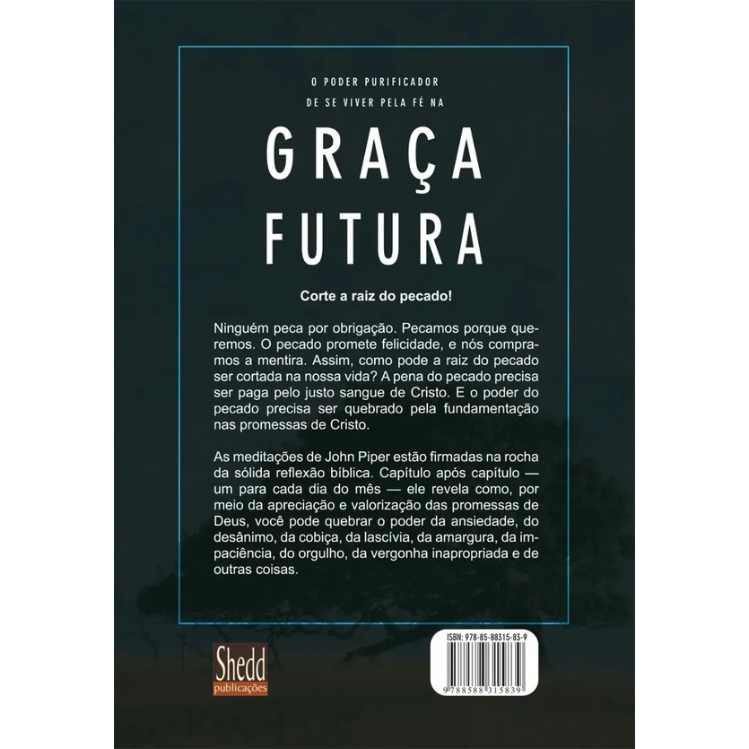 Graça Futura O propósito do pastor Piper ao escrever este livro é revitalizar o decadente cristianismo que só conhece a graça barata e a fé barata. Impregnado da Bíblia, embebido de Deus, profundamente evangélico e apaixonadamente humano, Piper preenche as dimensões esquecidas da fé — esperança e contentamento, estabilidade e santidade, a apreciação de Deus e o louvor a ele — com mão de mestre. Este é um livro rico e sábio, um livro para ser apreciado e relido. Em busca De Deus Este livro é um manual moderno de espiritualidade. O autor argumenta que servir a Deus por obrigação não satisfaz o coração de Deus, e que buscar a alegria em Deus é a maior motivação do cristão. Porque quanto mais satisfeitos estivermos em Deus, mais Deus será glorificado em nós. É um livro revolucionário, uma verdadeira mudança de paradigmas. Trata de temas como prazer cristão, casamento, missões, amor, conversão, soberania de Deus e outros do nosso cotidiano. Detalhes dos Produtos: Autor: John Piper Editora: Shedd Publicações Formato: 16x23cm Acabamento: Brochura Páginas: Em Busca De Deus - 296 | Graça Futura: 384