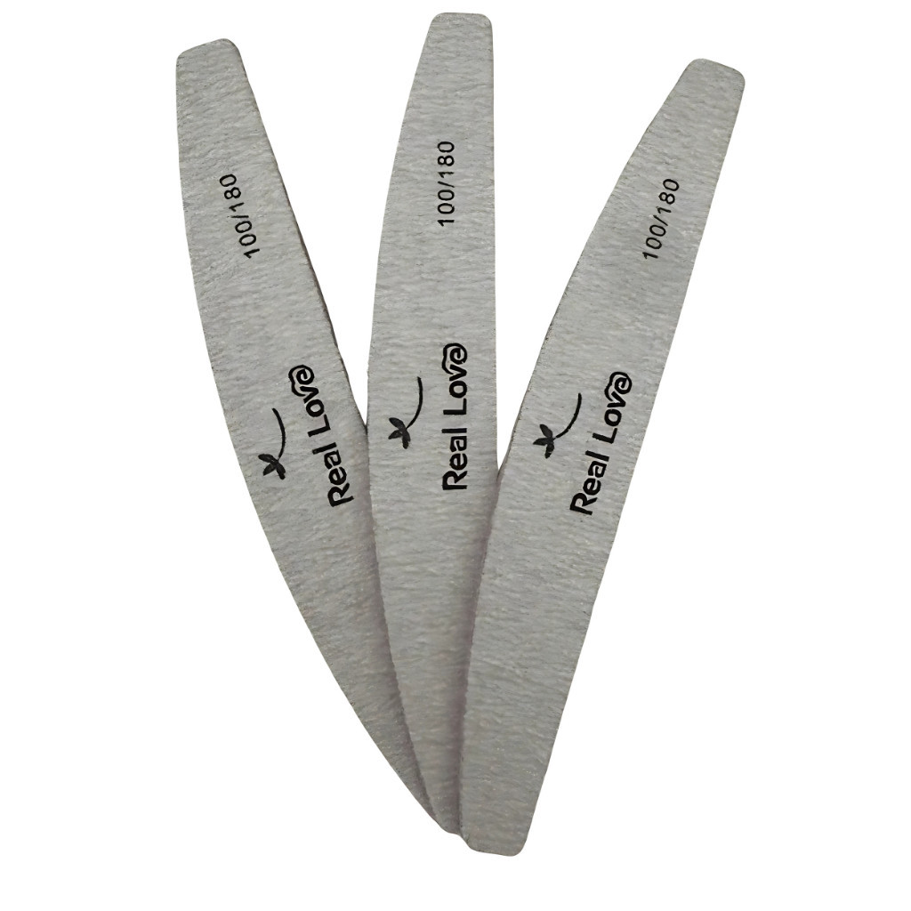 Lixa Boomerang 100/180 Unha Porcelana Acrygel Fibra - Real Love Lixa profissional é ideal para acabamento de unhas postiças, porcelana e gel, garantindo um excelente resultado; Seu formato anatômico ajuda no acabamento e detalhamento na proximidade das cutículas. Com sua granulação 100, consegue um acabamento mais fino e detalhado. Já com a granulação 180, consegue um desgaste mais preciso. Recomendada para uso profissional e doméstico. A lixa conta com uma placa reforçada no interior para dar firmeza na hora de lixar. Feita em vários formatos, ela é uma lixa de ótima qualidade, bem reforçada para não abrir durante o uso. Contem : 2 Lixas
