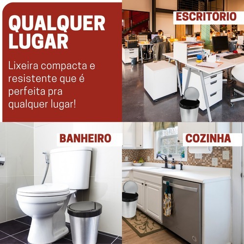 Kit 2 Lixeira Cesto De Lixo Inox 10 Litros 2 Unidades Com Tampa Lixo Escritório Cozinha