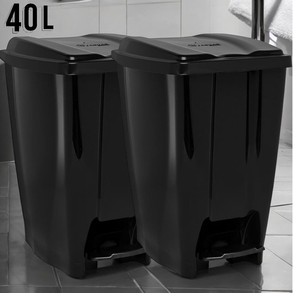Kit 2 Lixeiras 40 Litros com Pedal e Tampa em Plástico Resistente Eco Nature Preta