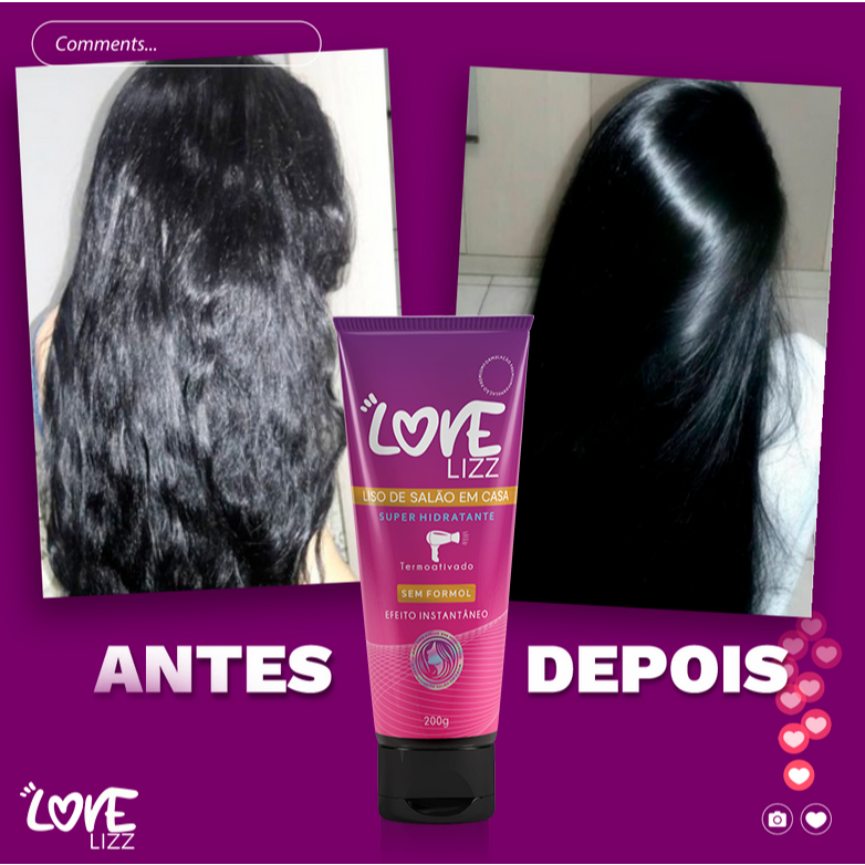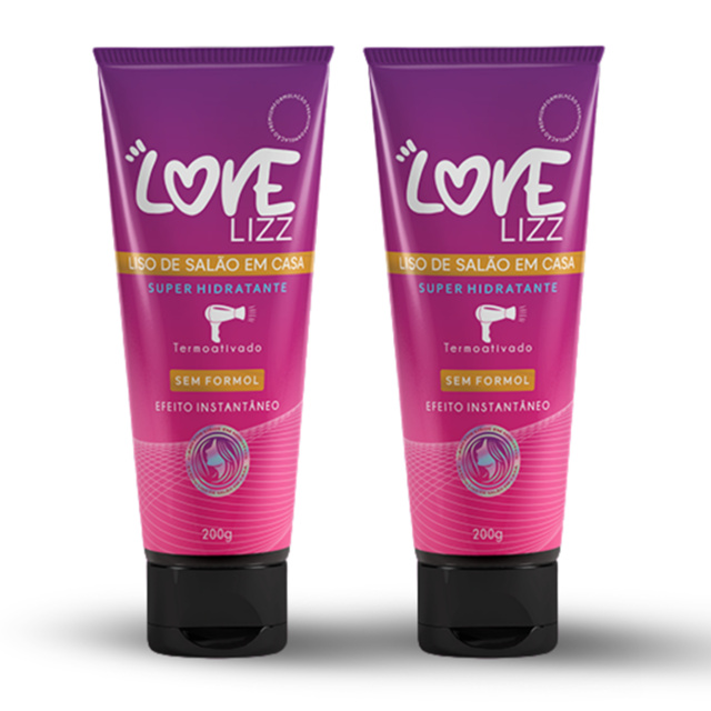 Kit 2 Love Lizz 200ml Progressiva no Chuveiro Sem Formol Cabelos Lisos Termoativado