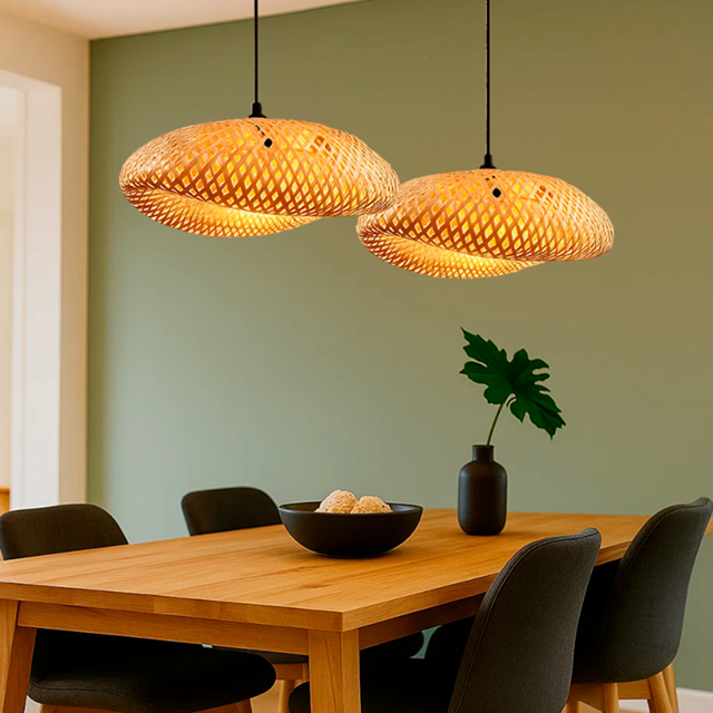 Kit 2 Lustres Pendente de Bambu Teto Restaurante Rústico Redondo