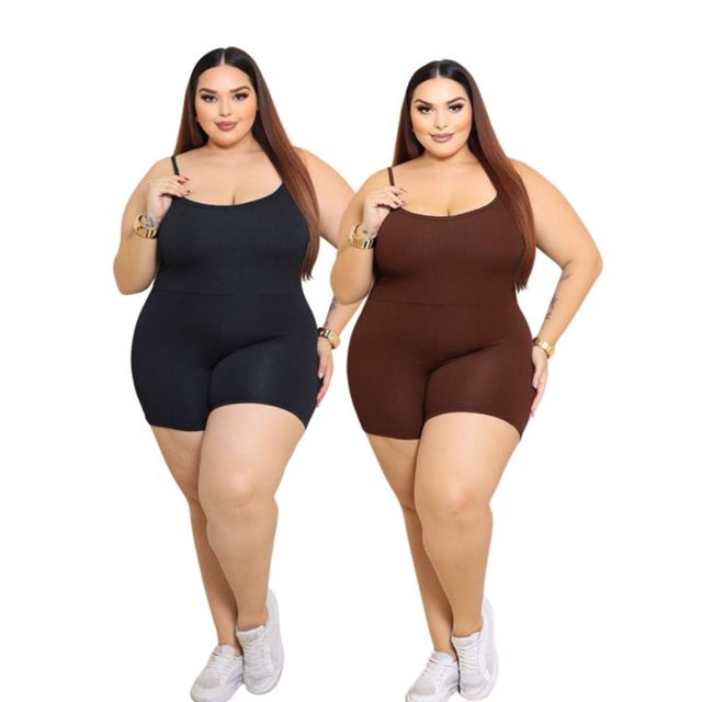 Kit 2 Macaquinho Malhar Plus size Curto Anarruga Feminino Estiloso Alça Fitness Academia Macacão P055