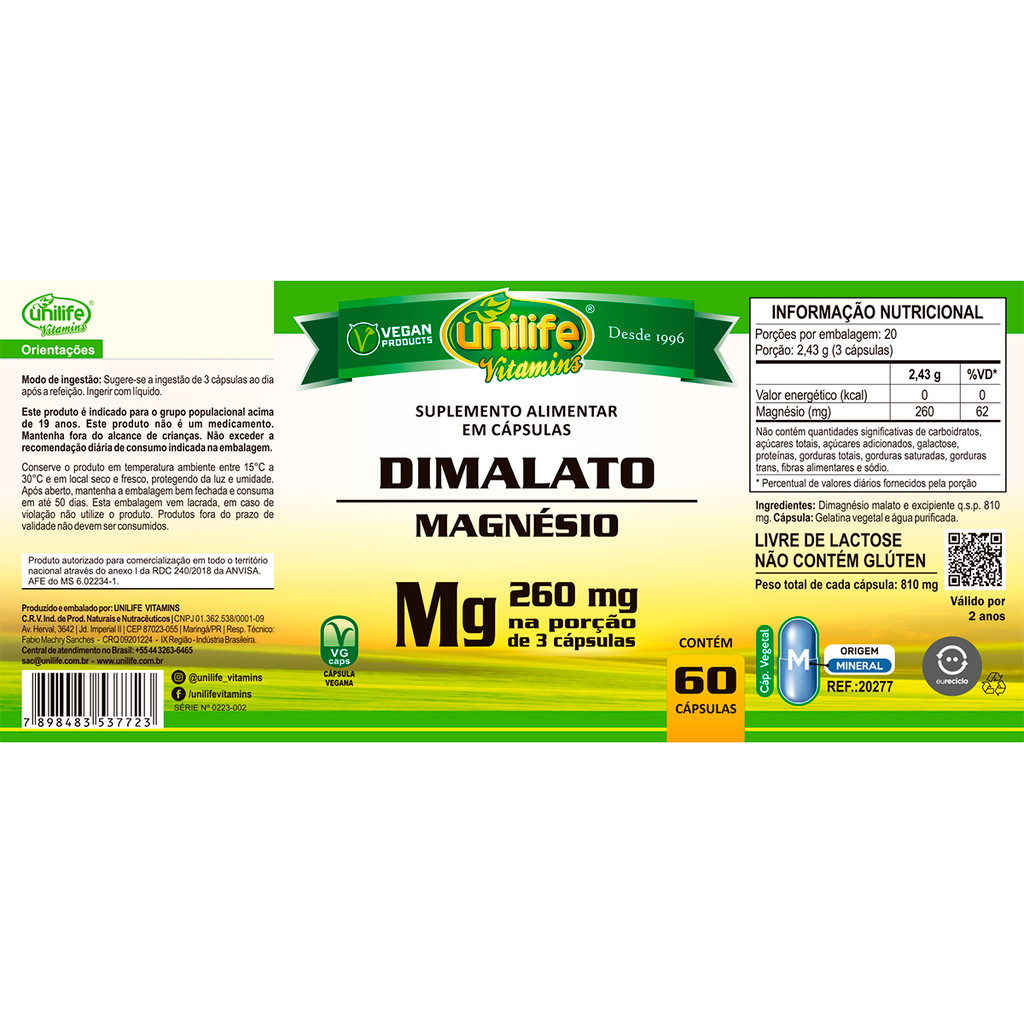 Kit 2 Magnésio Dimalato Unilife 60 Cápsulas
