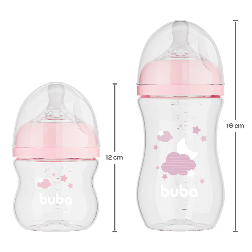 Kit 2 Mamadeira Buba Easy Flow Anticólica Nuvem Rosa 120 ml e 270 ml
