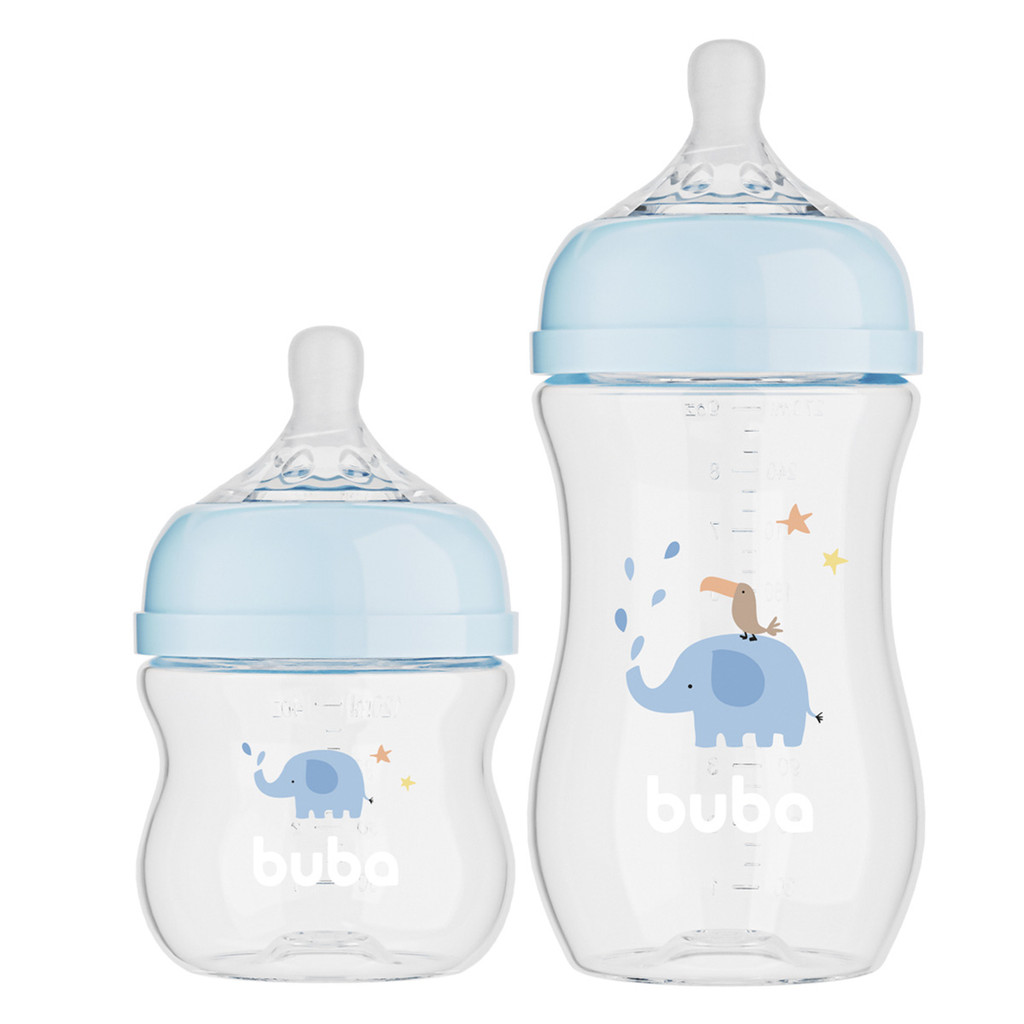 Kit 2 Mamadeiras Buba Easy Flow Elefante Azul 120ml e 270ml