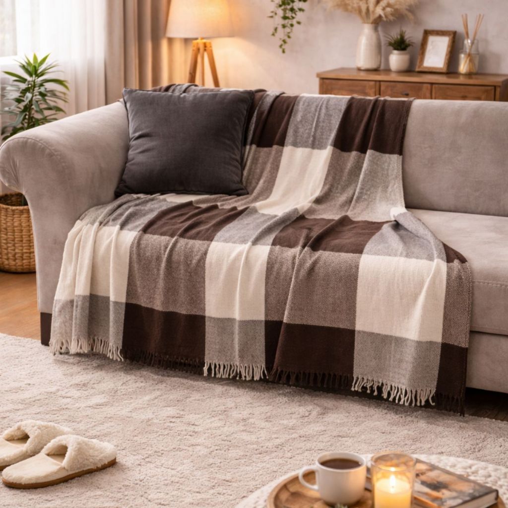 Manta para Sofá – Conforto, Estilo e Proteção Deixe sua sala mais elegante e aconchegante com a manta para sofá. Além de complementar a decoração com muito charme, ela é perfeita para proporcionar conforto durante momentos de descanso, como maratonas de filmes e séries, especialmente nos dias mais frios. Versátil e funcional, a manta também ajuda a proteger o estofado contra sujeiras e o desgaste do uso diário, mantendo seu sofá conservado por mais tempo. Um item prático que transforma o ambiente com simplicidade e sofisticação. Dimensões Largura: 1,20 m Comprimento: 2,10 m Tamanho ideal para sofás, poltronas ou até mesmo para uso como cobertor. Como usar a manta na decoração A manta é uma forma prática de agregar conforto e estilo ao ambiente. Confira algumas orientações: Combine cores e texturas com o sofá e com os demais elementos da sala para criar uma composição harmoniosa. Disponível em diferentes materiais, como algodão, lã e fio acrílico, com opções de toque macio e texturas variadas. Dependendo do material (como algodão), pode ser lavada na máquina, oferecendo mais praticidade na rotina.