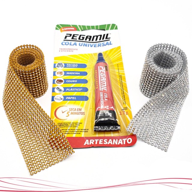 Kit 2 Manta De Strass Alto Brilho 26 Fileiras +Cola Pegamil Para Artesanato