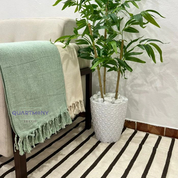 Kit 2 Manta Grande Sofa Cama Verde Agua Cru Decorativa Algodão Luxo Artesanal Rustico Carnaval