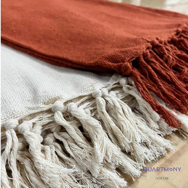 Kit 2 Mantas Grande Para Sofa Cama Terracota Crú Decorativa Algodão Artesana Rustico Carnaval