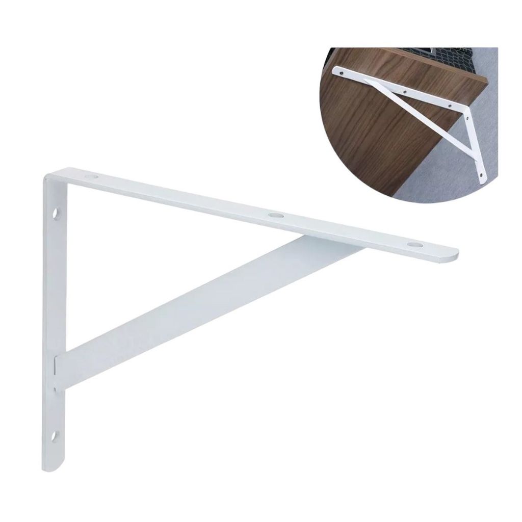 Kit 2 Mão Francesa Suporte Cantoneira Branca Prateleira 30cm ou 20cm + Parafusos e Buchas