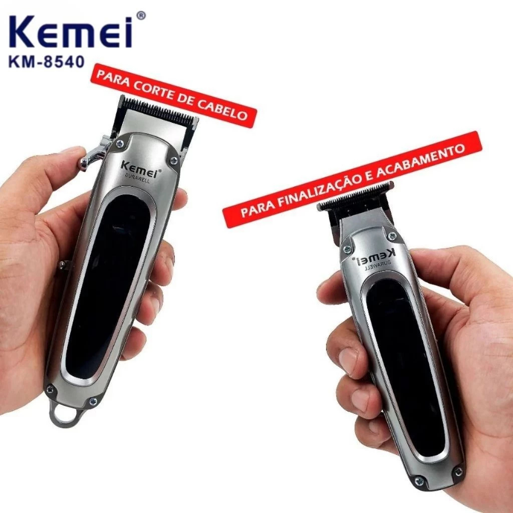 Kit 2 Máquinas de Cortar Cabelo Corte e Acabamento Elétrica Recarregável Kemei KM-8540 5W Bivolt