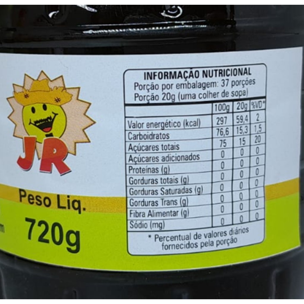 Kit 2 Melado de Cana JR - 730g Descrição: O melado de cana é um subproduto da cana de açúcar, pode ser utilizado em diversas receitas como substituto do açúcar, além de conferir sabor característico aos alimentos. É rico em vitaminas e minerais, principalmente em ferro.