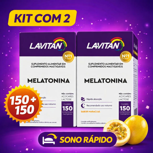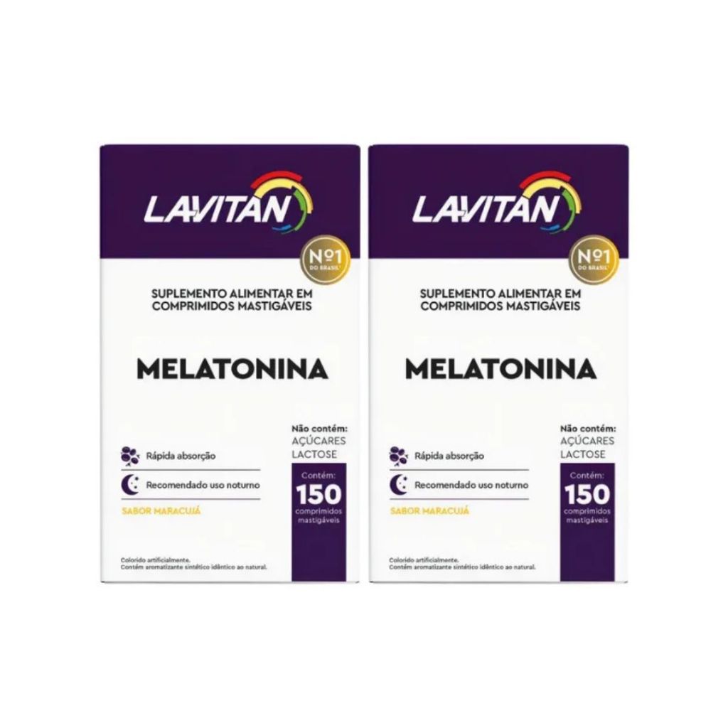 Kit 2 Melatonina Lavitan 150 Comprimidos Mastigáveis Sono Rápido Sem Açúcar Sabor Maracujá