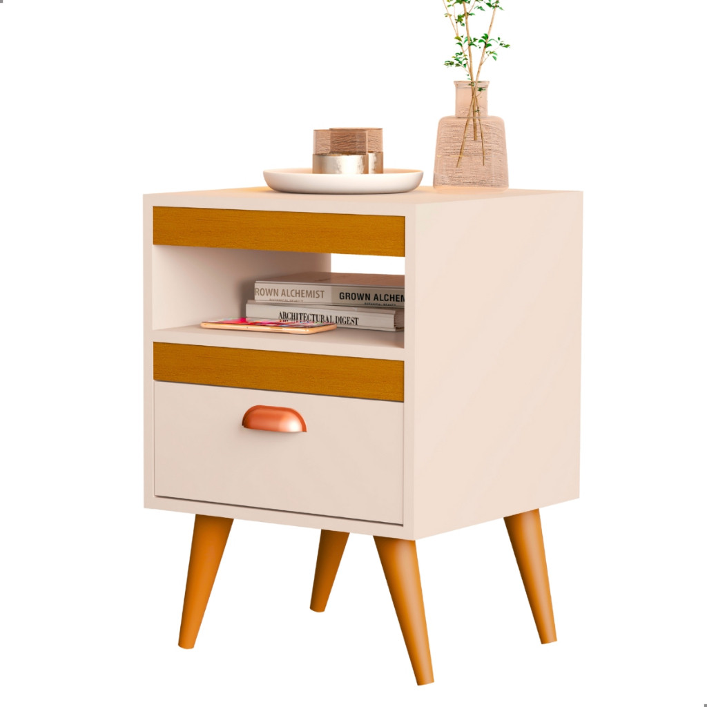 Kit 2 Mesa De Cabeceira Para Quarto Com Pés e Gaveta Com Nicho Criado Com 2 Unidades Mesinha Canto