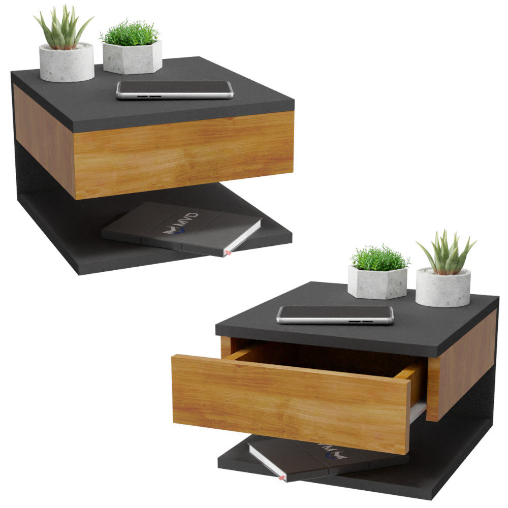 KIT 2 Mesa de Cabeceira Suspensa com Gaveta e Prateleira MVD Moveis