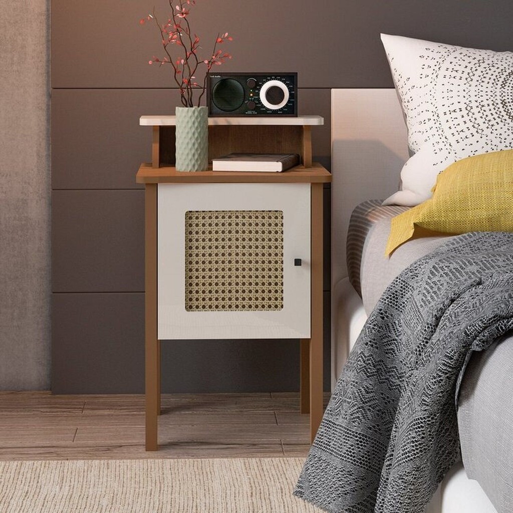 Kit 2 Mesas de Cabeceira 100% Mdf Porta Reversível Detalhes Curvos