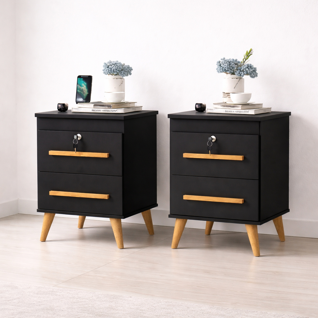 Kit 2 Mesas De Cabeceira Retro 2 Gavetas