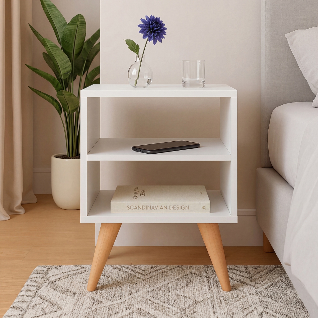 Kit contendo 2 Unidades Mesa de Cabeceira Retrô Branca com Pés Palito O detalhe que falta para seu quarto ficar mais bonito, organizado e com cara de decoração premium. Com design retrô moderno, acabamento clean e nichos funcionais, ela une beleza e praticidade na medida certa. Perfeita para deixar celular, livros, luminária e objetos sempre à mão, sem abrir mão do estilo. Por que escolher essa mesa? • Visual elegante que valoriza o ambiente • Pés palito super charmosos • Nichos que ajudam na organização • Combina com quartos modernos, neutros e minimalistas • Compacta, bonita e funcional Dimensões: • Altura: 45 cm • Largura: 30 cm • Profundidade: 25 cm É aquele móvel que, sozinho, já muda a sensação do quarto. Se você quer um ambiente mais arrumado, sofisticado e acolhedor, essa é a escolha certa. Garanta a sua antes que acabe.