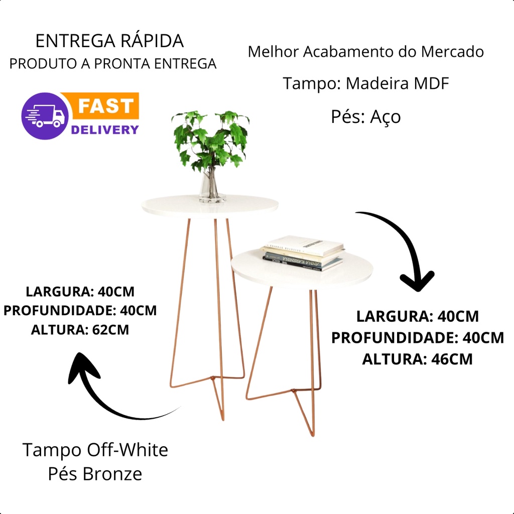 Seja Bem Vindo a Loja Oficial da R.D.S ENVIO IMEDIATO! PRODUTO A PRONTA ENTREGA!! DETALHES DO PRODUTO A Mesa de Apoio e Lateral é uma peça de mobiliário sofisticada e versátil, projetada para adicionar elegância e funcionalidade a qualquer espaço. Esta mesa, confeccionada com materiais de alta qualidade e design contemporâneo, combina harmoniosamente forma e função, proporcionando uma solução prática e esteticamente agradável para diversas necessidades de decoração e utilidade. Caracterizada por uma estrutura de aço resistente, os pés desta mesa oferecem estabilidade e durabilidade excepcionais, garantindo sua capacidade de suportar de forma confiável uma variedade de objetos, de itens decorativos a necessidades do dia a dia. A qualidade do aço confere um visual moderno e elegante, tornando-a um complemento ideal para espaços com decoração contemporânea ou industrial. O tampo da mesa é construído com atenção meticulosa aos detalhes, utilizando materiais de alta qualidade em madeira MDF, proporcionando uma superfície elegante e duradoura. Esta área de apoio é espaçosa o suficiente para acomodar livros, revistas, bebidas, dispositivos eletrônicos ou qualquer item que você deseje ter à mão enquanto relaxa em sua sala de estar, quarto, escritório ou qualquer outro ambiente. Além de sua funcionalidade, a Mesa de Apoio e Lateral também é uma peça de design elegante, com linhas limpas e uma estética contemporânea que se adapta facilmente a diferentes estilos de decoração. Sua versatilidade permite que ela seja usada como uma mesa de canto, mesa lateral, mesa de apoio para sofás ou até mesmo como uma peça de destaque no centro do ambiente. Conclusivamente, é um exemplo de design inteligente e elegância atemporal, unindo a força do aço à beleza da madeira MDF. Esta peça de mobiliário é ideal para quem busca combinar funcionalidade, durabilidade e estilo em sua decoração, criando um ambiente sofisticado e prático. ATENÇÃO PARA OS DADOS DE ENTREGA Confira o seu endereço de entrega cadastrado, não é possível alterar o endereço após a compra. NOSSO DIFERENCIAL - Melhor acabamento do mercado. - Produtos resistentes e de alta durabilidade. - Preço imbatível de Fábrica. - Envio mais rápido do Brasil. FICHA TÉCNICA Mesa Apoio Altura: 62cm Largura: 40cm Profundidade: 40cm Mesa Lateral Altura: 46cm Largura: 40cm Profundidade: 40cm *PRODUTO DESMONTADO, A MONTAGEM É POR CONTA DO COMPRADOR.