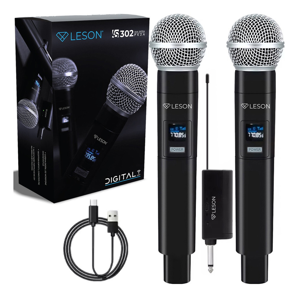 Kit 2 Microfone Sem Fio Digital Receptor Leson Ls302 Pk 2.4