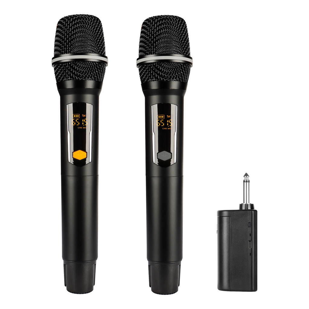 Kit 2 Microfones Sem Fio Vhf Dinâmico Recarregável Tela