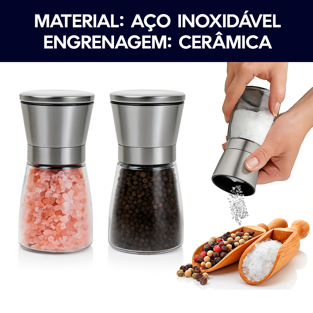 🧂✨ Kit 2 Moedores de Sal e Pimenta Inox – Design Gourmet, Elegância e Praticidade na Sua Cozinha! 🍽️ Leve mais sabor e sofisticação para o seu dia a dia com o Kit 2 Moedores de Sal e Pimenta Inox! Ideal para sal grosso, pimenta-do-reino e especiarias gourmet, esse conjunto é indispensável para quem ama cozinhar com estilo e qualidade. 😍 🌟 CARACTERÍSTICAS DO PRODUTO: ✔️ Kit com 2 moedores manuais – perfeitos para sal e pimenta ✔️ Material Premium: corpo em aço inoxidável com parte em vidro transparente para visualizar o conteúdo ✔️ Engrenagem em cerâmica – garante moagem precisa, uniforme e durável ✔️ Design moderno e ergonômico – conforto e elegância ao cozinhar ✔️ Fácil de usar e recarregar – basta girar para moer ✔️ Tamanho ideal e portátil – perfeito para cozinha, churrasco ou até viagens 🍴 IDEAL PARA MOER: 🌶 Pimenta-do-reino preta, branca ou rosa 🧂 Sal grosso, sal rosa do Himalaia, sal marinho 🌿 Especiarias secas como pimenta síria, pimenta jamaicana, calabresa e mais! 📦 ITENS INCLUSOS: ✅ 2 Moedores Inox com parte em vidro ✅ Embalagem segura e pronta para presente 🎁 💡 DIFERENCIAIS: ⭐ Engrenagem de cerâmica que não enferruja e não altera o sabor dos alimentos ⭐ Design elegante, ideal para compor mesas e churrascos ⭐ Produto durável, resistente e de alta qualidade 🚚 INFORMAÇÕES IMPORTANTES: ✅ Envio imediato e garantido pela Shopee ✅ Produto com nota fiscal e fotos reais ✅ Durabilidade garantida 🔥 Dê um toque gourmet às suas receitas com o Kit 2 Moedores de Sal e Pimenta Inox – funcionalidade, design e sabor em um só produto! 💎👨🍳