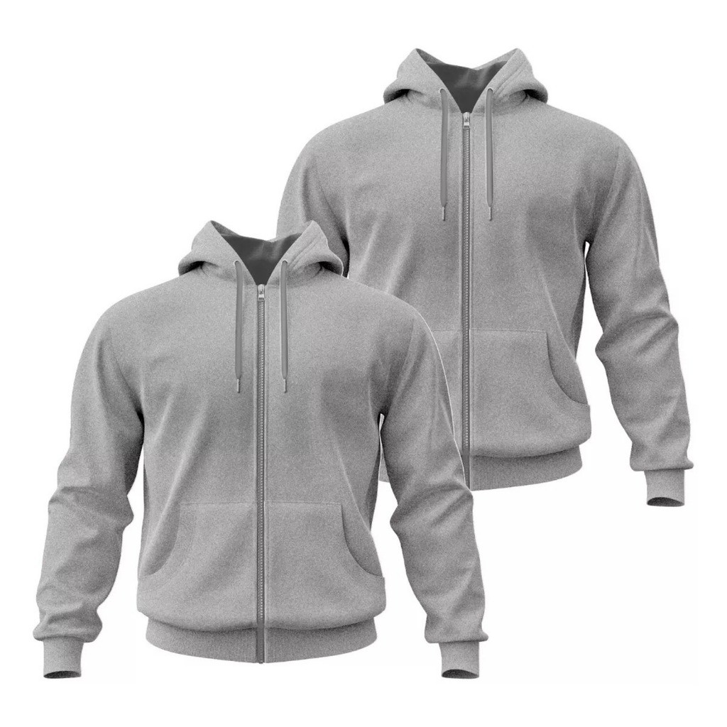 Kit 2 Moletons Canguru Zíper Algodão Blusa De Frio Com Capuz Jaqueta Unissex