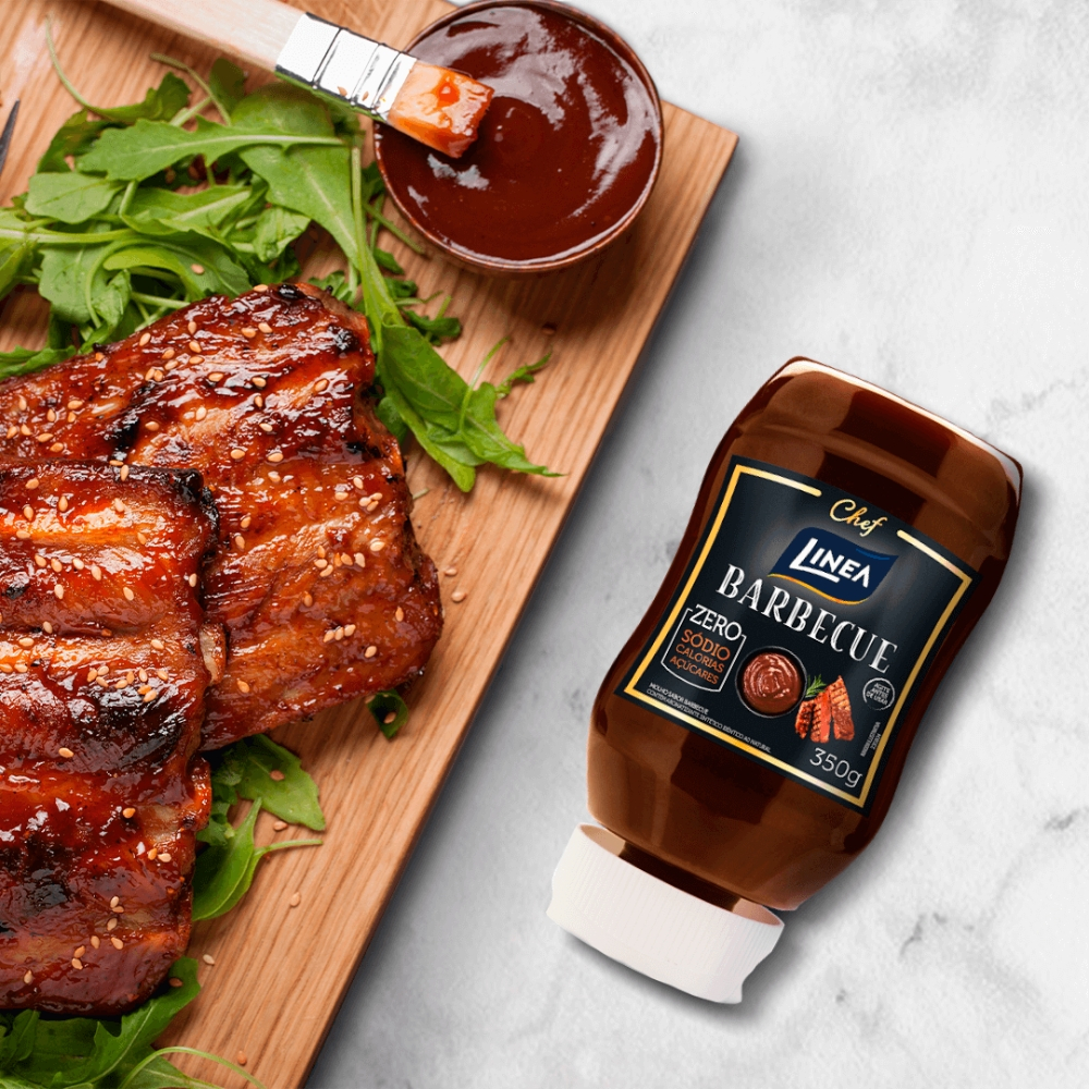 Linea Molho de Barbecue é sem açúcar, zero sódio e cheio de sabor! Feito com polpa de tomate, cebola, vinagre, páprica, mostarda, e pimenta caiena. E ainda é zero calorias, proporcionando uma experiência deliciosa e saudável. 1 KIT COMPOSTO POR: - 2 unidades Molho Barbecue Tradicional Linea 350g (cada). INGREDIENTES: Vinagre, água, polpa de tomate, cloreto de potássio, cacau em pó, cebola, mostarda, páprica, pimenta caiena, canela em pó, aromatizantes, estabilizante goma xantana, conservador sorbato de potássio e edulcorantes: sucralose e acesulfame de potássio. NÃO CONTÉM GLÚTEN.