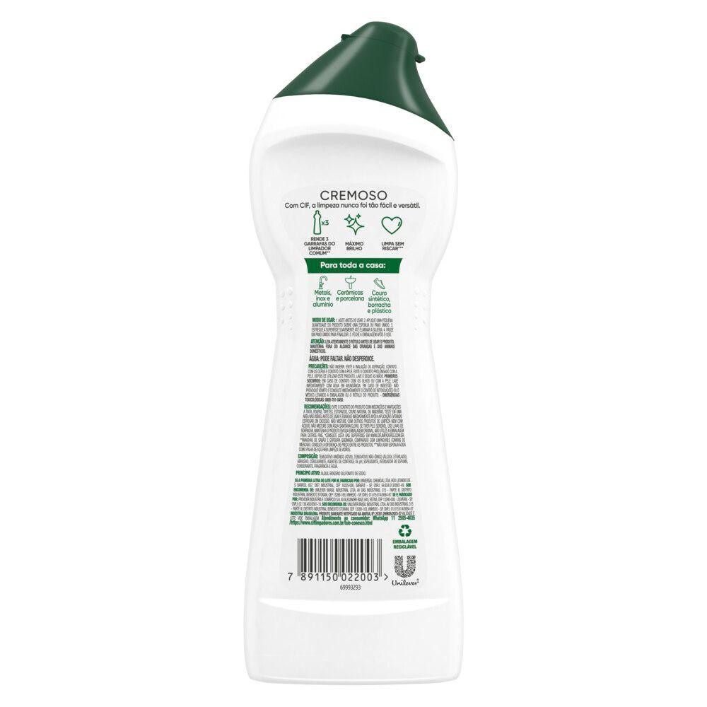 O Kit contém: 2 Multiuso CIF Cremoso Limão com 250ml cada. • Cif Cremoso Limão é o produto de limpeza milagrosa que limpa fácil e dá brilho em mais de 100 superfícies, removendo 100% da sujeira difícil, sem esforço • O Cif Cremoso Limão possui um perfume suave, é mais concentrado e rende 3 garrafas do limpador comum • Fórmula com tecnologia poderosa que limpa sem riscar***, removendo toda a sujeira desde a mais pesada até a limpeza de casa do dia a dia, deixando um brilho imbatível • Com o Cif, a limpeza nunca foi tão fácil e versátil. Cif Cremoso possui três variantes: Original, Limão e Laranja • Cif Cremoso Limão é o produto de limpeza milagrosa para todo tipo de objeto como: eletrodomésticos, pias, couro sintético, borracha, plástico, porcelana e serve até como limpador de pisos • Cif promove uma limpeza milagrosa completa com produtos versáteis que atendem a todas as suas necessidades. Cif. Sinta a limpeza acontecer! ***Não usar esponja ácida, como palha de aço, para a limpeza de vidros. A imagem do produto é meramente ilustrativa e o rótulo pode variar. Será enviada a embalagem disponível no momento da compra.