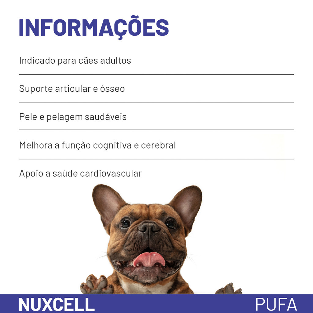 | Kit 2 Nuxcell Pufa Suplemento Vitamínico Para Cães Biosyn 2g este produto | R$ 85,05 | 18% | 5.0/5 | 1 |