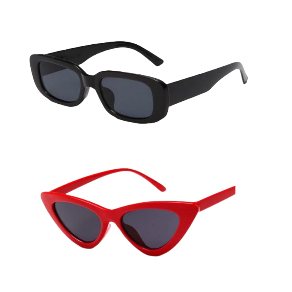 Kit 2 Óculos De Sol Preto Retangular + Gatinho Retrô Vintage Feminino Masculino