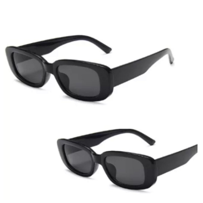 Kit 2 Óculos De Sol Preto Retangular + Gatinho Retrô Vintage Feminino Masculino